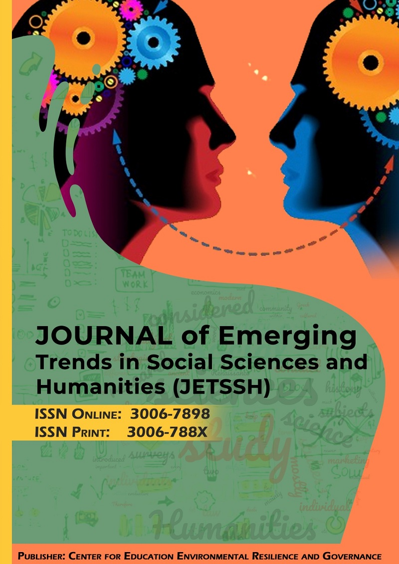The Journal of Emerging Trends in Social Sciences and Humanities is an open-access, peer-reviewed, and refereed journal published by the Centre for Educating Environmental Resilience and Governance (IEERG), Lahore, Pakistan. All content is freely available without charge to the user or their institution. The journal is published under a Creative Commons License 4.0. The readers are allowed to search, read, download, copy, print, or link to the full texts of the articles published in the Journal of Emerging Trends in Social Sciences and Humanities through the link https://creativecommons.org/licenses/by-nc/4.0/ without asking prior permission from the publisher or the author. Previous issues are also available in electronic form https://JoETSSH.com/index.php/JoETSSH/issue/archive
